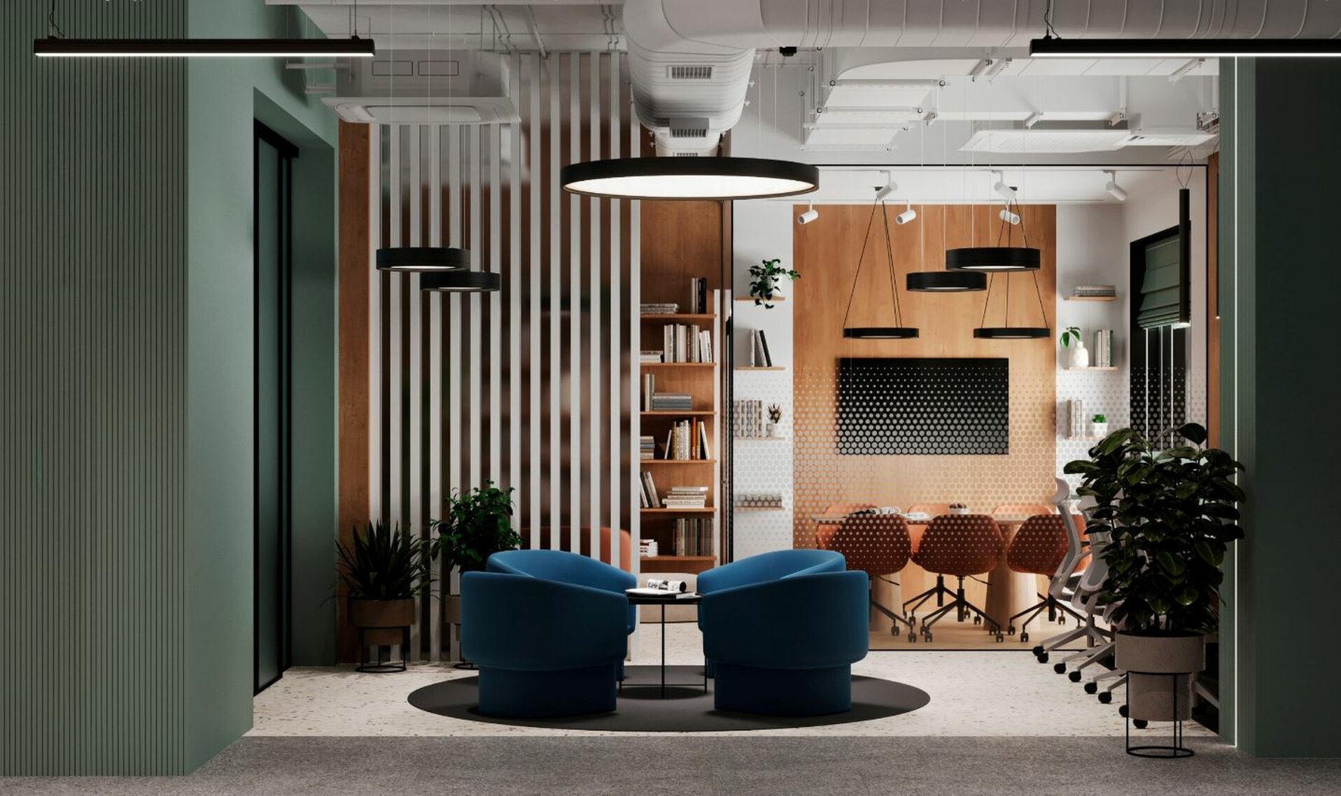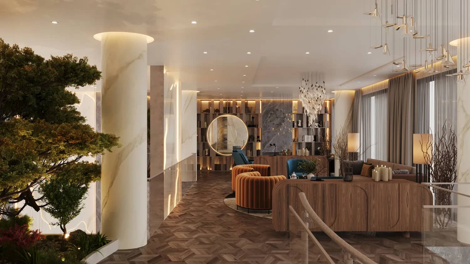 Гранд-лобби, детский клуб, фитнес-зал, бьюти-кабинет, коворкинг с комнатой переговоров, кинозал, клубная гостиная с библиотекой и все это только для жильцов.