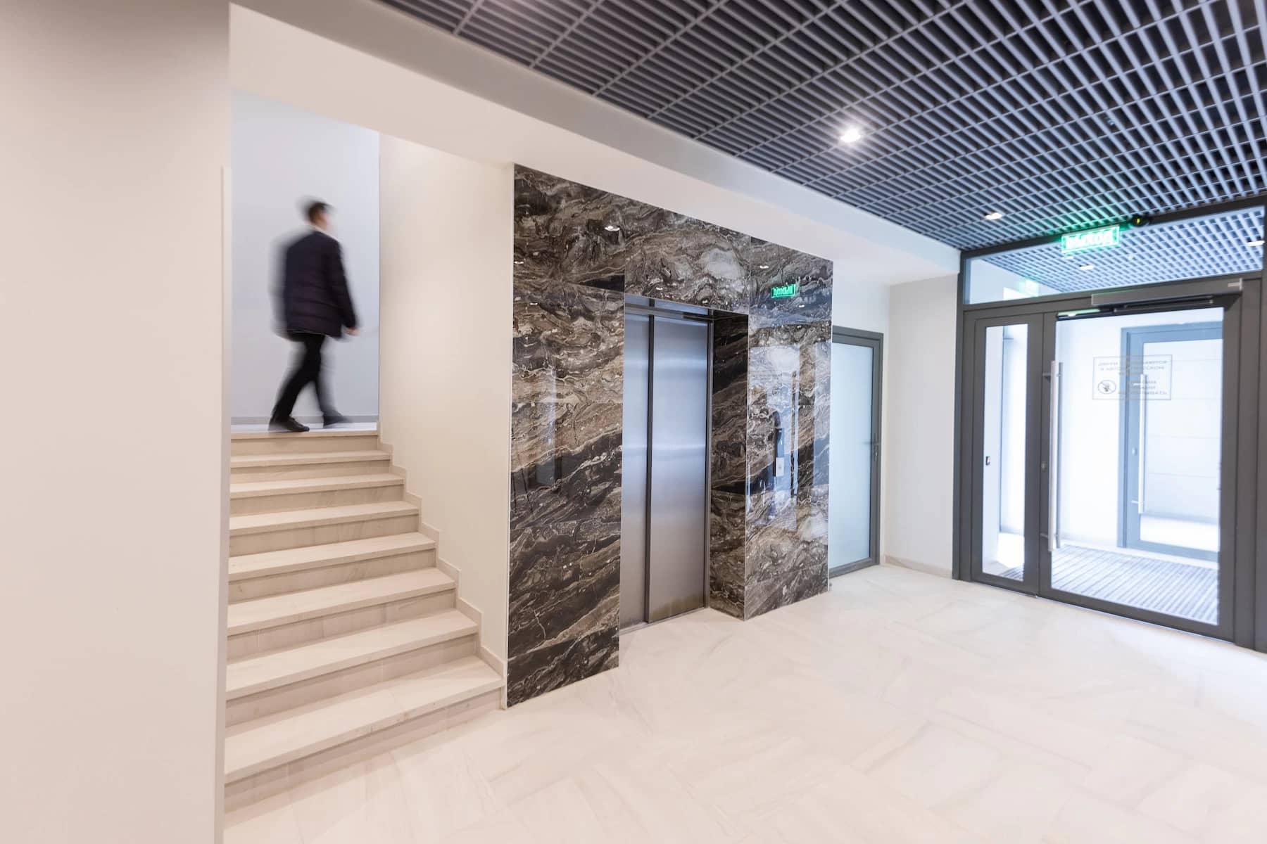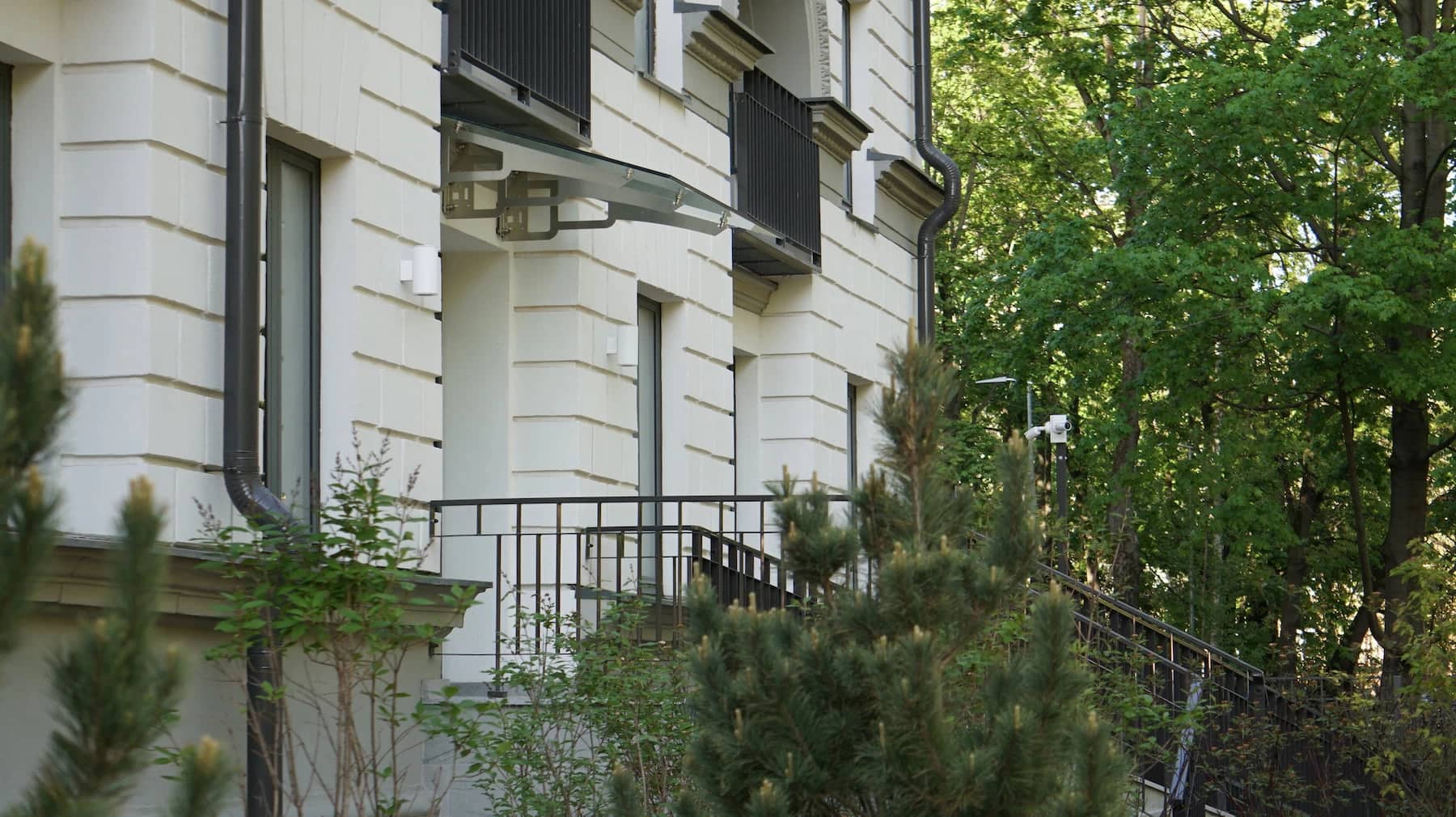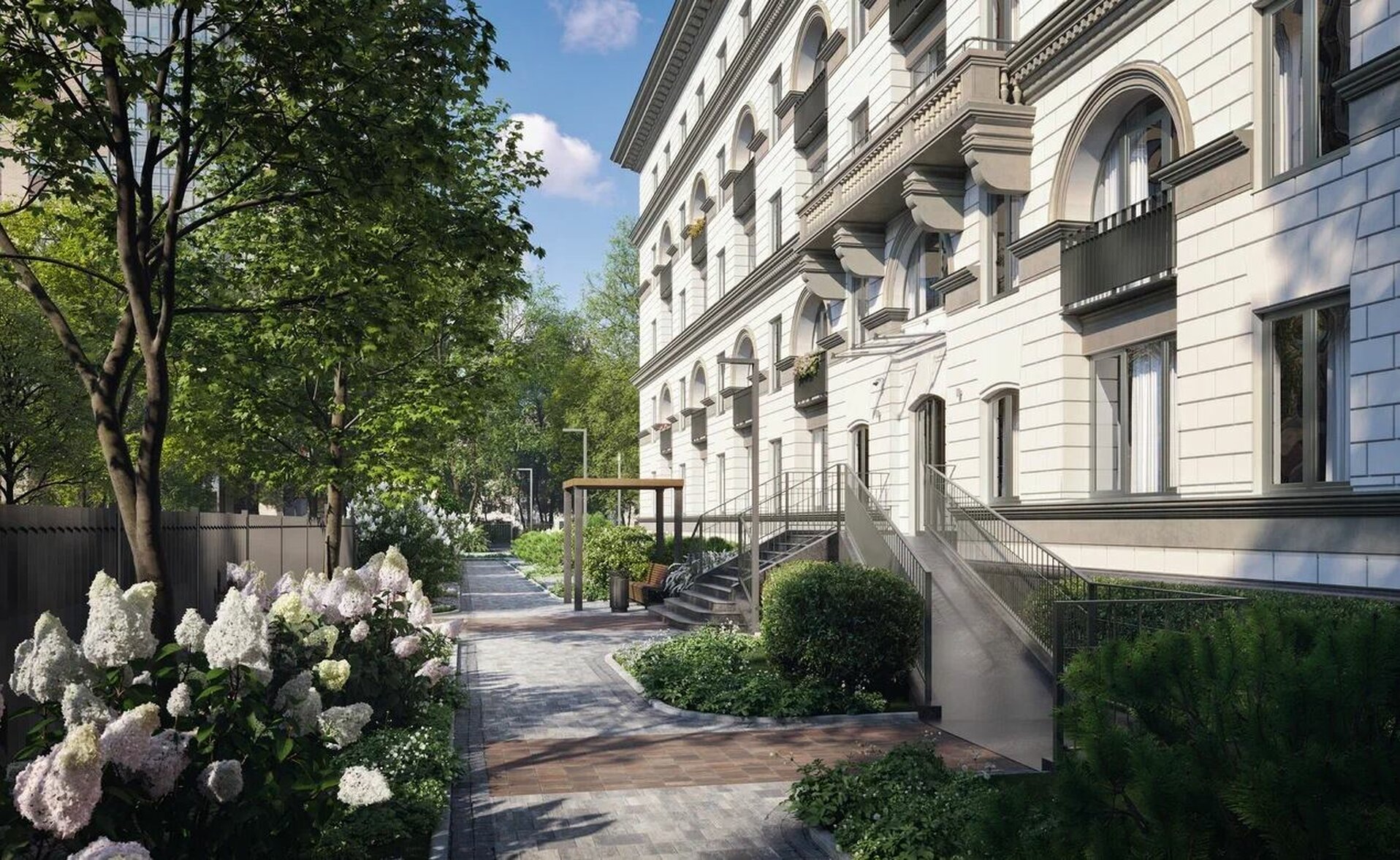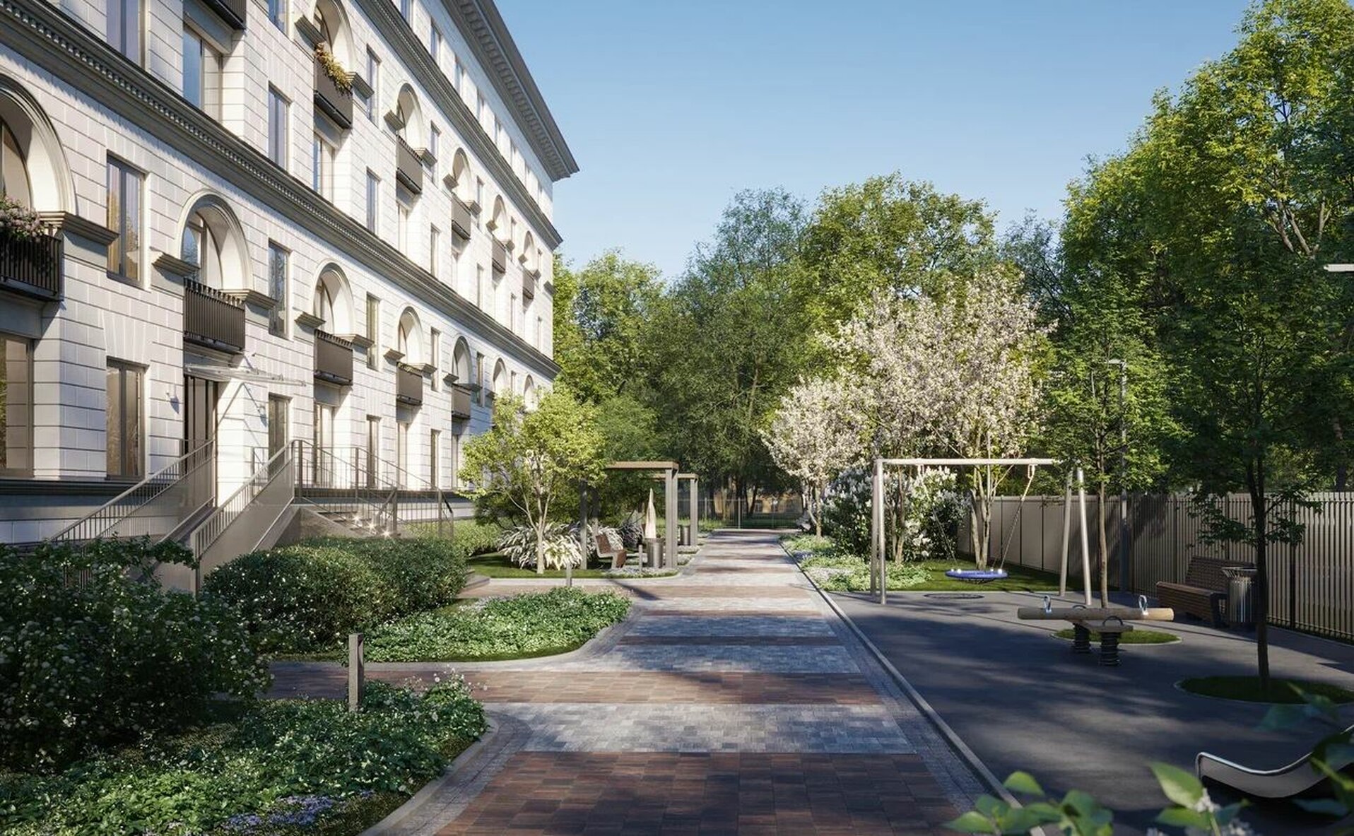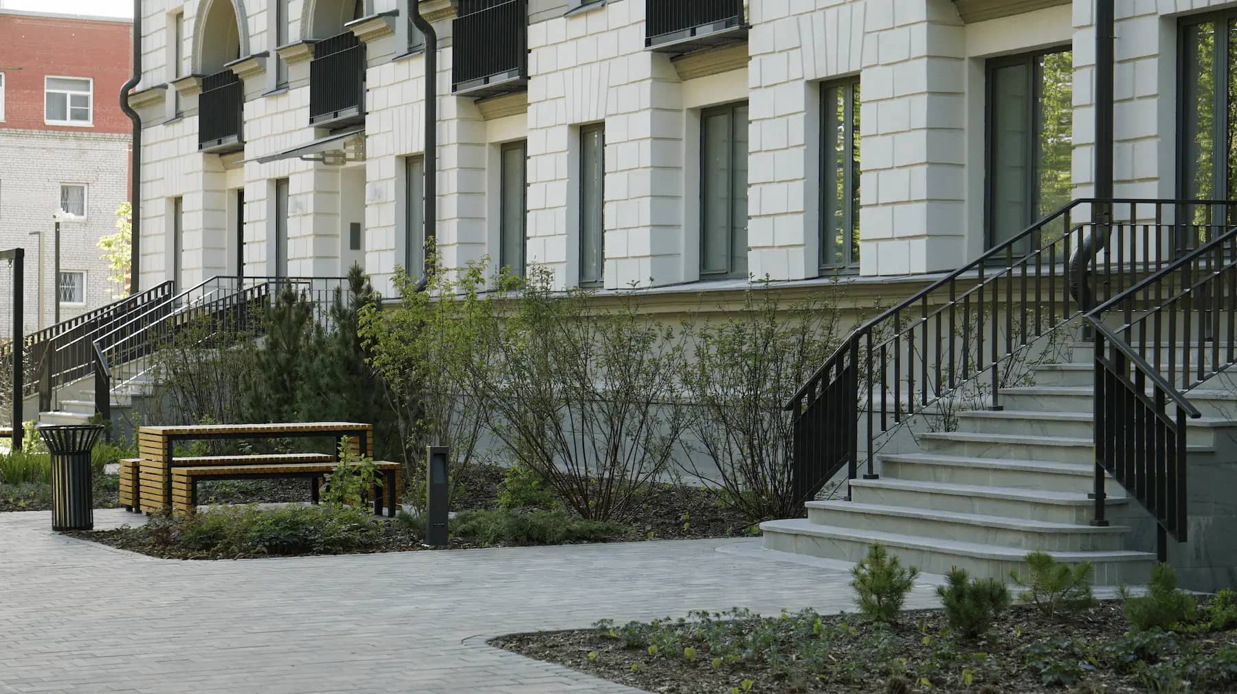 На закрытой охраняемой территории — ландшафтный дизайн от DEREVO PARK, детская площадка с натуральными материалами, зоны отдыха под перголами и освещение с мягкой подсветкой. В доме предусмотрены дизайнерские лобби, колясочные, зоны для мытья лап домашних животных, видеонаблюдение и система безбарьерной среды.