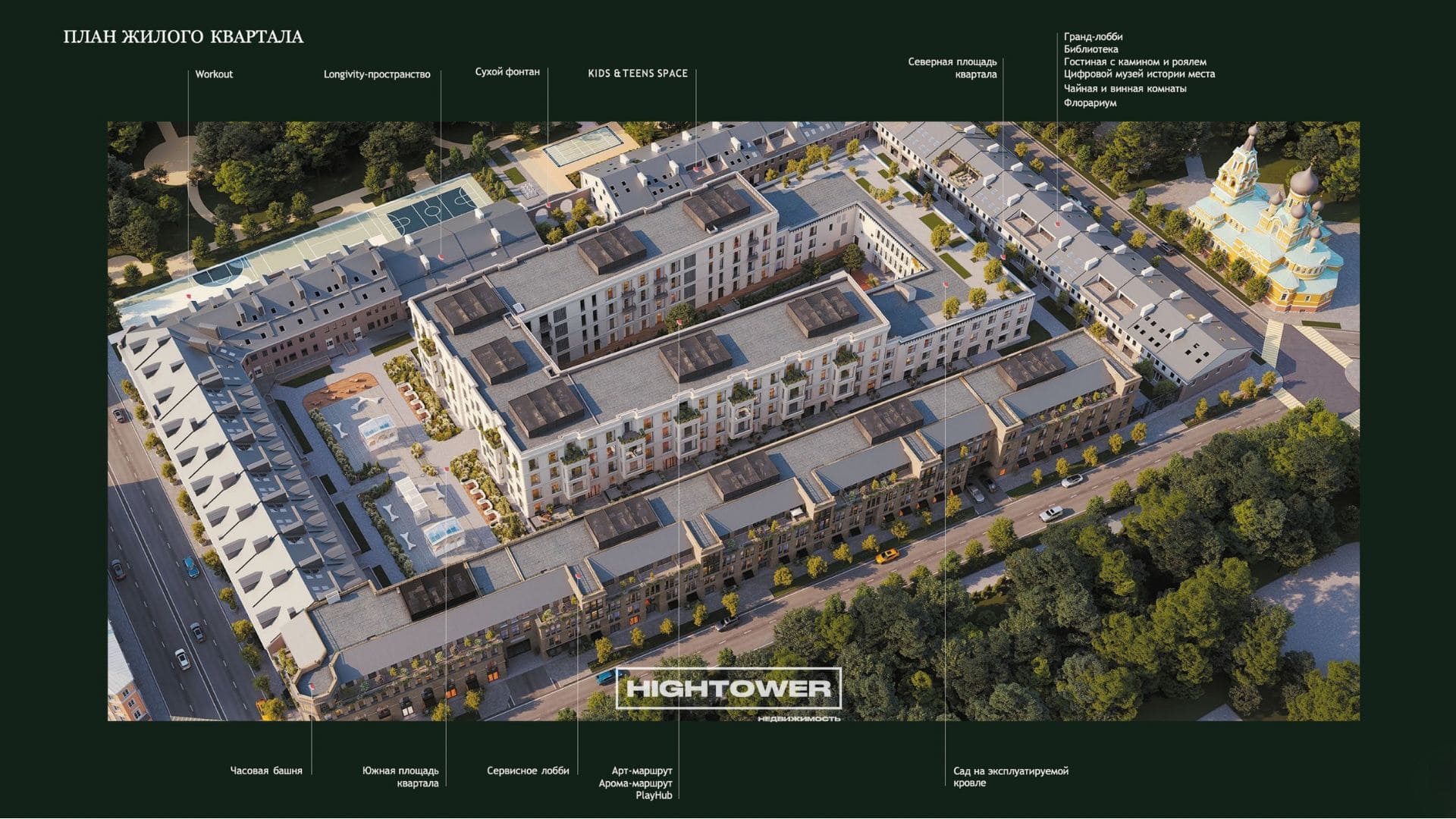В проекте предусмотрены приватные лобби, помещения для хранения, помещения под премиальные сервисы, а также подземный паркинг с прямым доступом к лифтам. Территория закрытая, обеспечивает тишину и приватность — редкость для центра города.