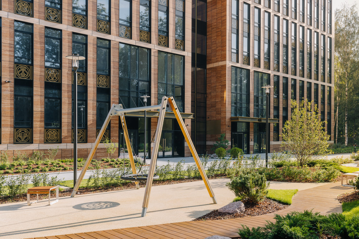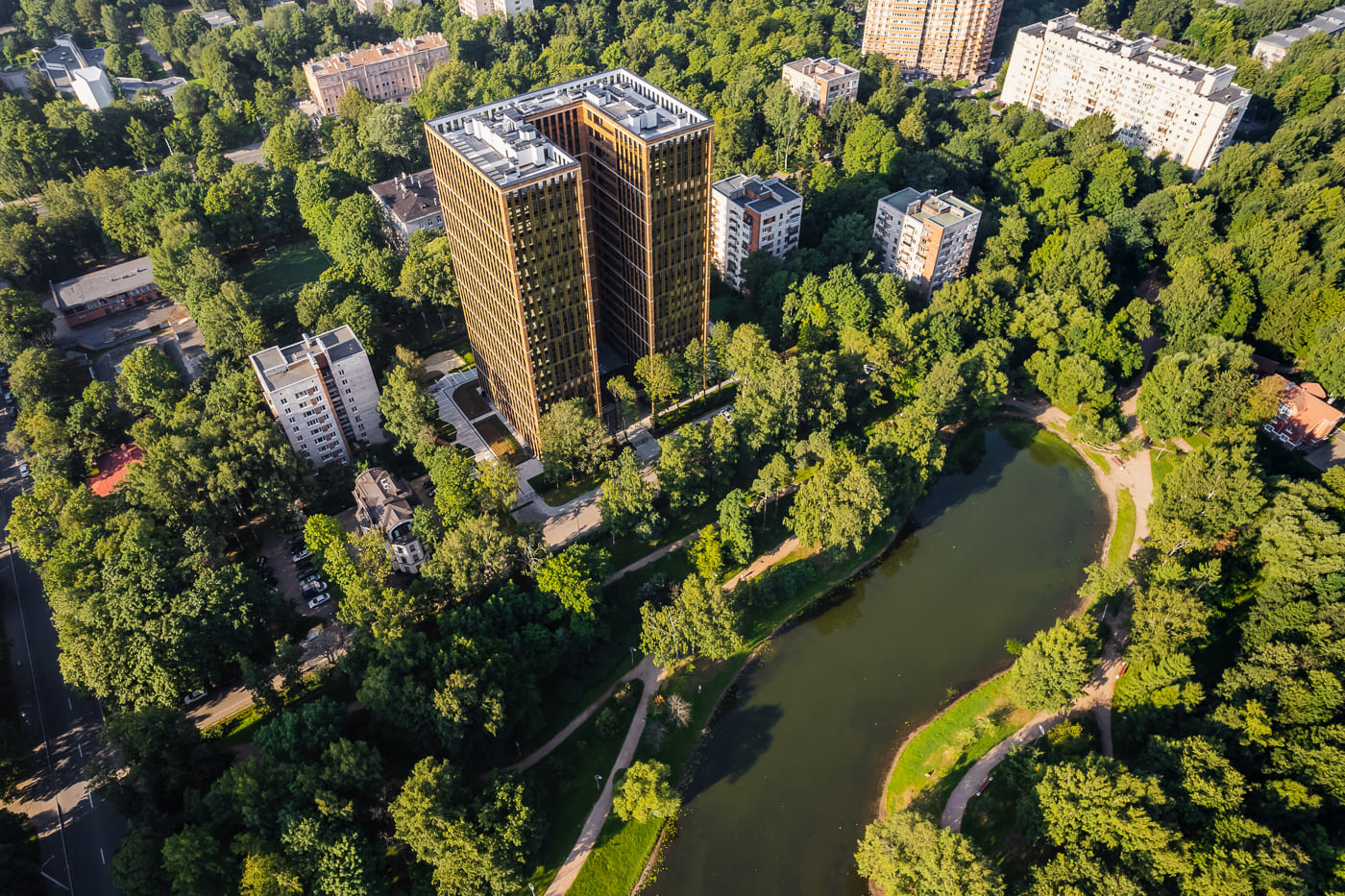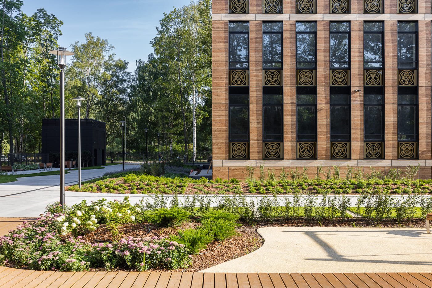 Перед домом расположен Серебряный сад — живописное пространство для прогулок и отдыха с ландшафтным дизайном, прудами и тихими аллеями. Он формирует зелёную панораму из окон и создаёт ощущение жизни в парке, не покидая города.