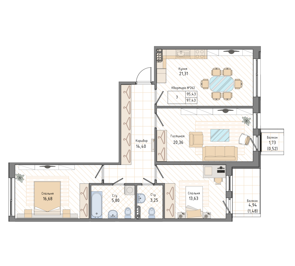 Вы сможете выбрать квартиру по количеству комнат, окон, высоте потолков, наличию дополнительных санузлов и гардеробных комнат, а также одно- или двухуровневую с балконом или террасой.