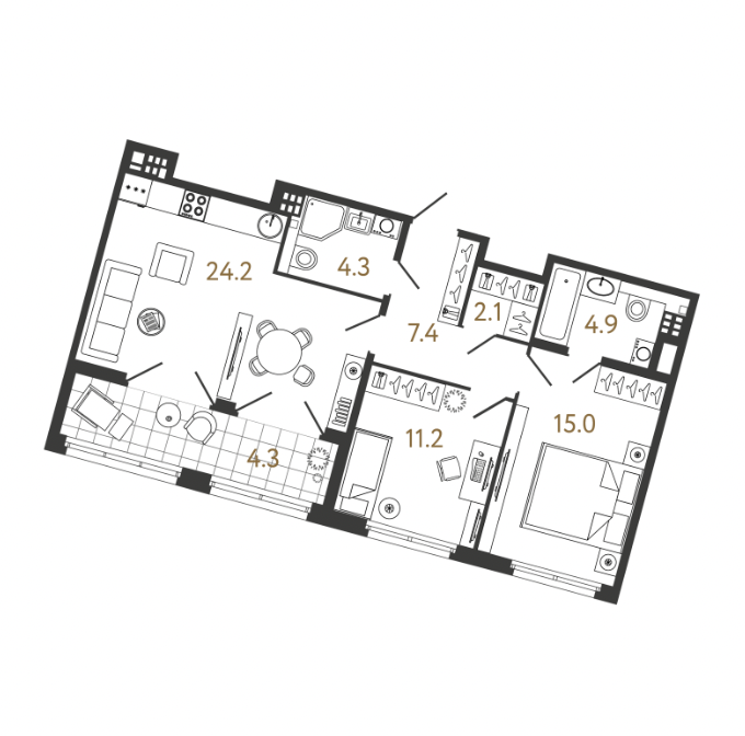 Комплекс состоит из двух корпусов высотой 6–9 этажей, соединённых триумфальной аркой и формирующих закрытый внутренний двор с благоустроенной территорией. В доме — 263 квартиры с панорамными окнами и видами на купола Феодоровского собора.