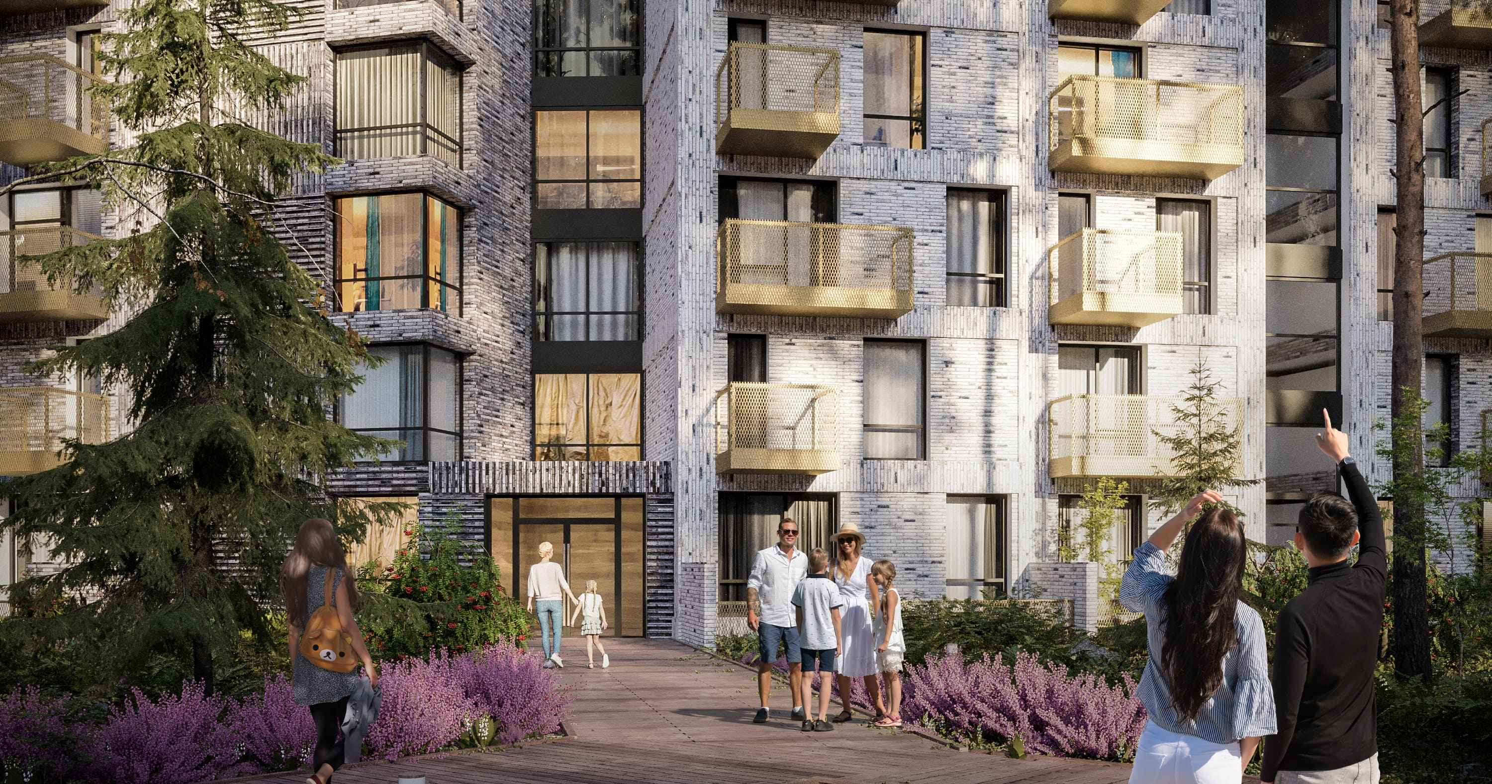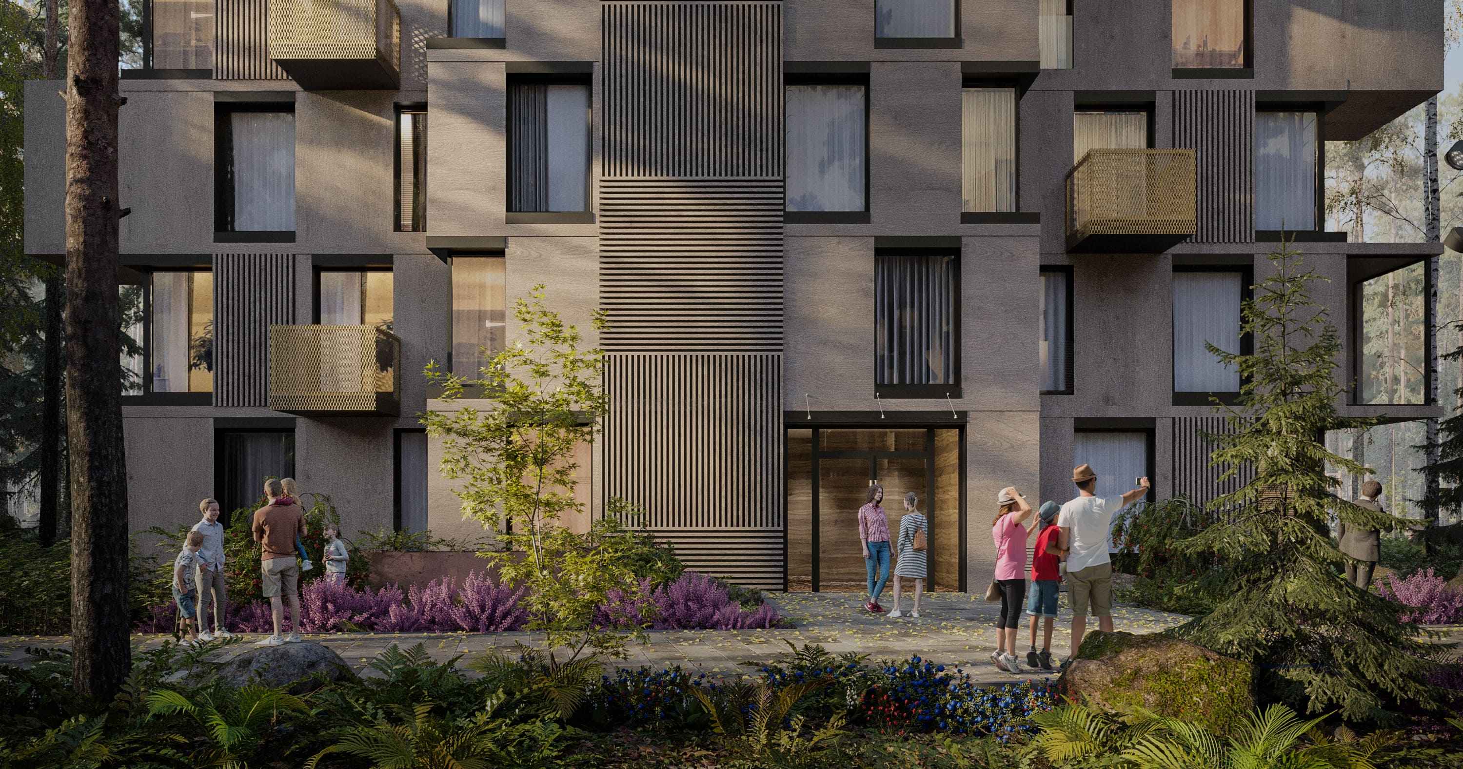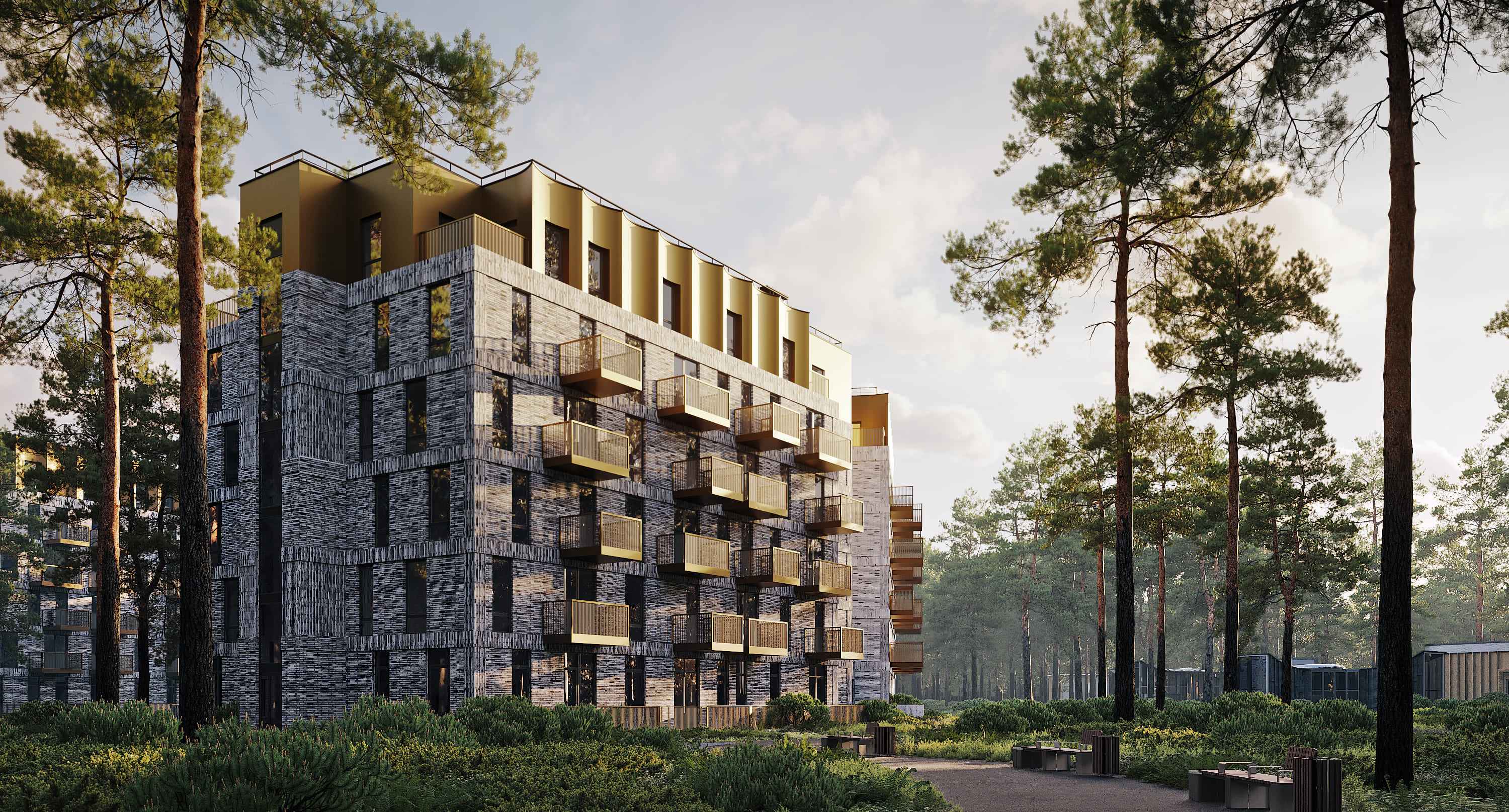 Более 40 типов резиденций площадью от 40 до 150 м² с панорамным остеклением, террасами и отделкой в двух стилях от студии Balcon. Интерьеры лобби созданы Point Design, в проектах используются натуральные материалы, индивидуальные планировки и системы «умный дом».