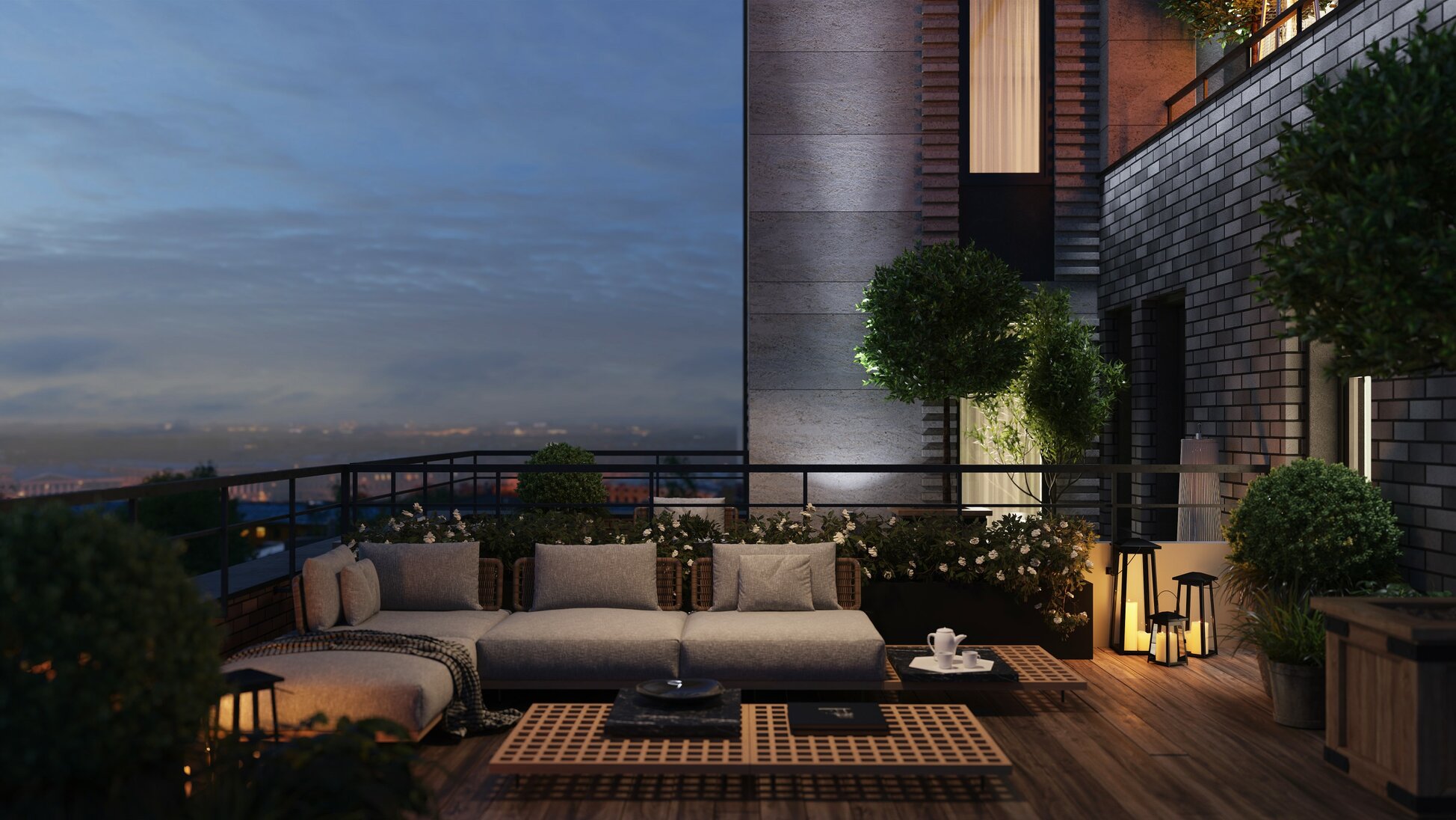 В доме — дизайнерское лобби с круглосуточным сервисом, автоматизированный подземный паркинг на 60 машиномест, детские и спортивные площадки, зоны отдыха и озеленённый двор. Система «умный дом», Face ID-доступ, видеонаблюдение, вентиляция и шумоизоляция премиум-класса.