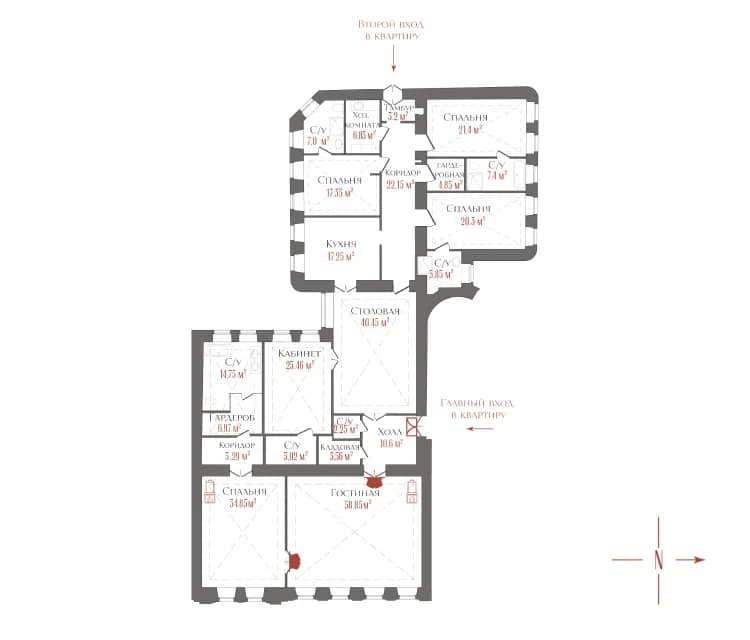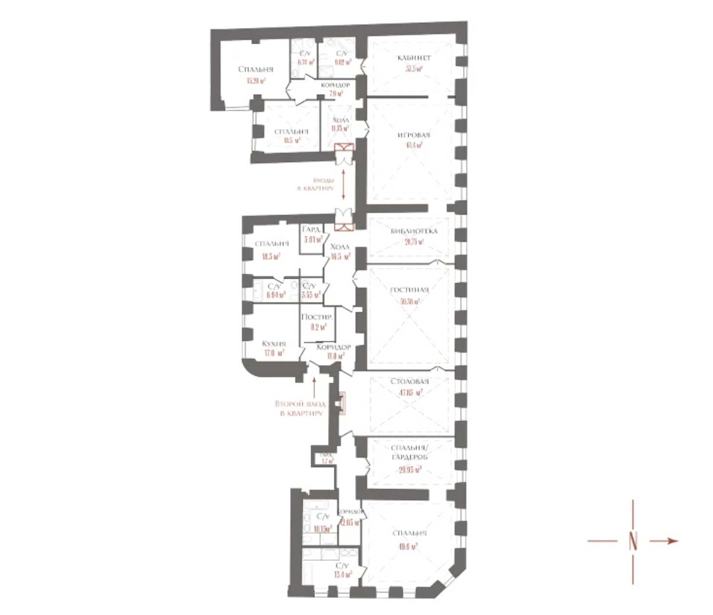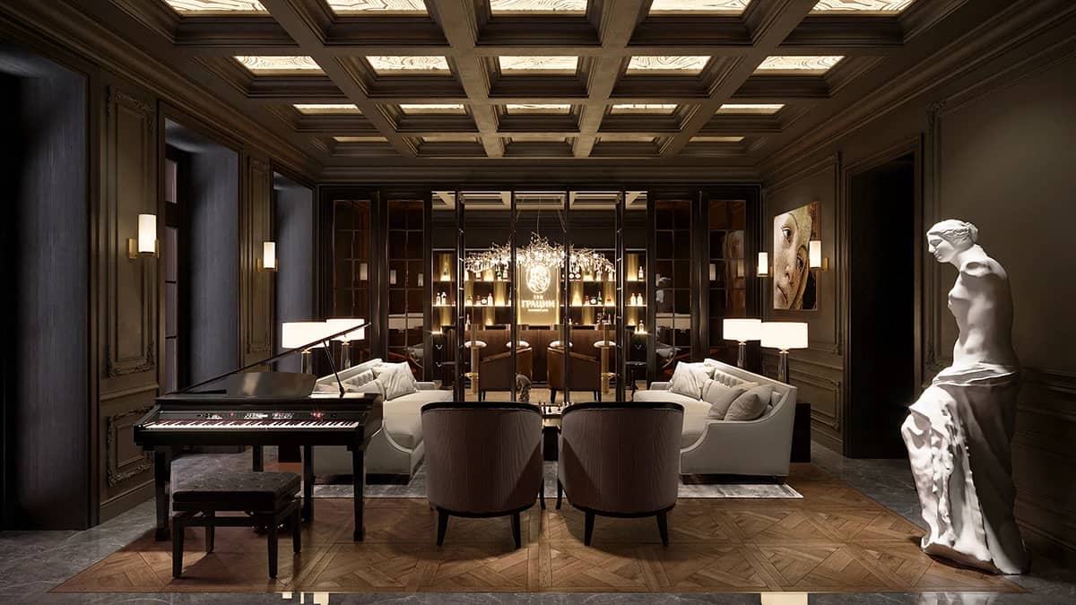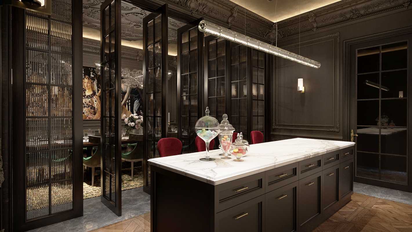 Кухня-столовая для семейных мероприятий. Сигарная комната. Фитнес-зал для резидентов. Внутренний двор.