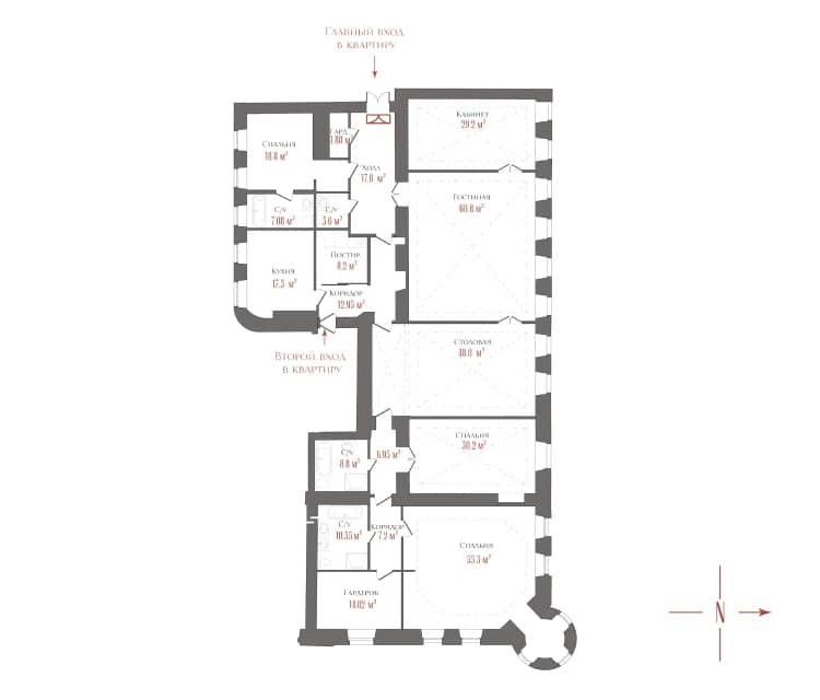 Три Грации - Представительские резиденции с большими светлыми окнами, высокими потолками и уникальными элементами отделки и декора. Из квартир открываются виды на символы Петербурга: Смольный собор, Неву и Таврический сад и дворец.